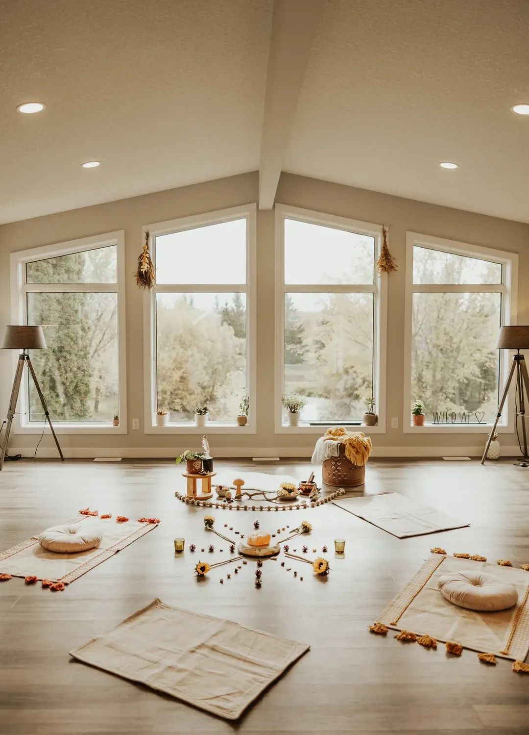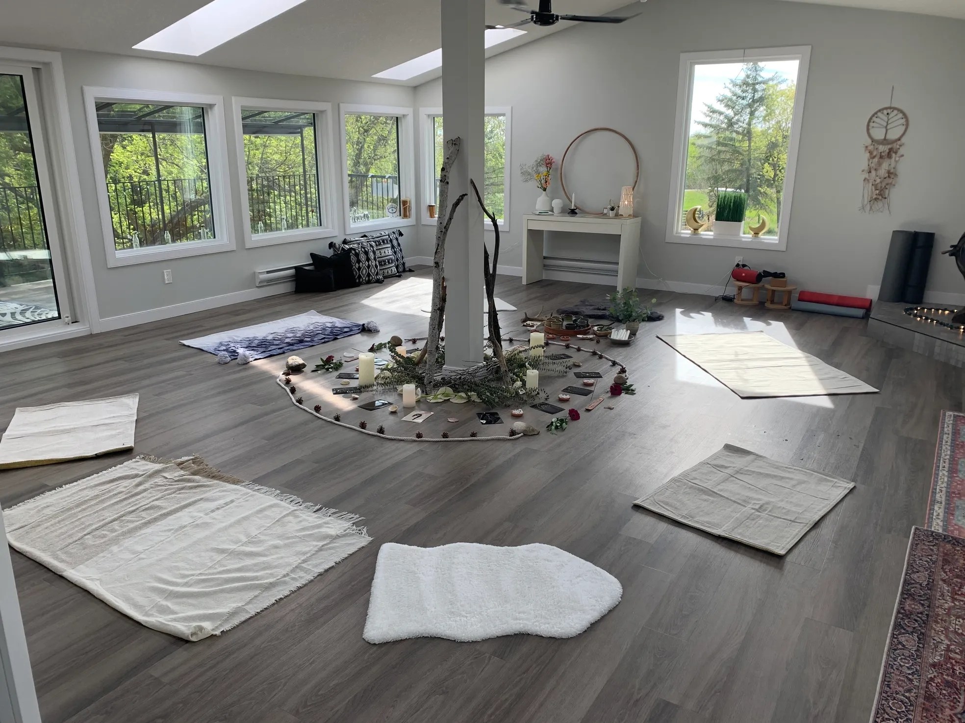 - A solarium-style studio – a bright, open space with natural light, a wood-burning fireplace, and a grounded energy for inside work
